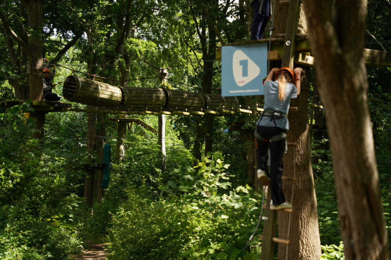 Dagen starter, med at alle får en grundig instruktion så man føler sig tryg og sikker inden man bliver sluppet løs i parkerne. Parkerne benytter dertil også et sikkerhedssystem der hedder ”continuos belay”, hvilket betyder at man slet ikke kan klikke sig af sikkerhedswiren før man er færdig med banen og igen står nede på jorden.